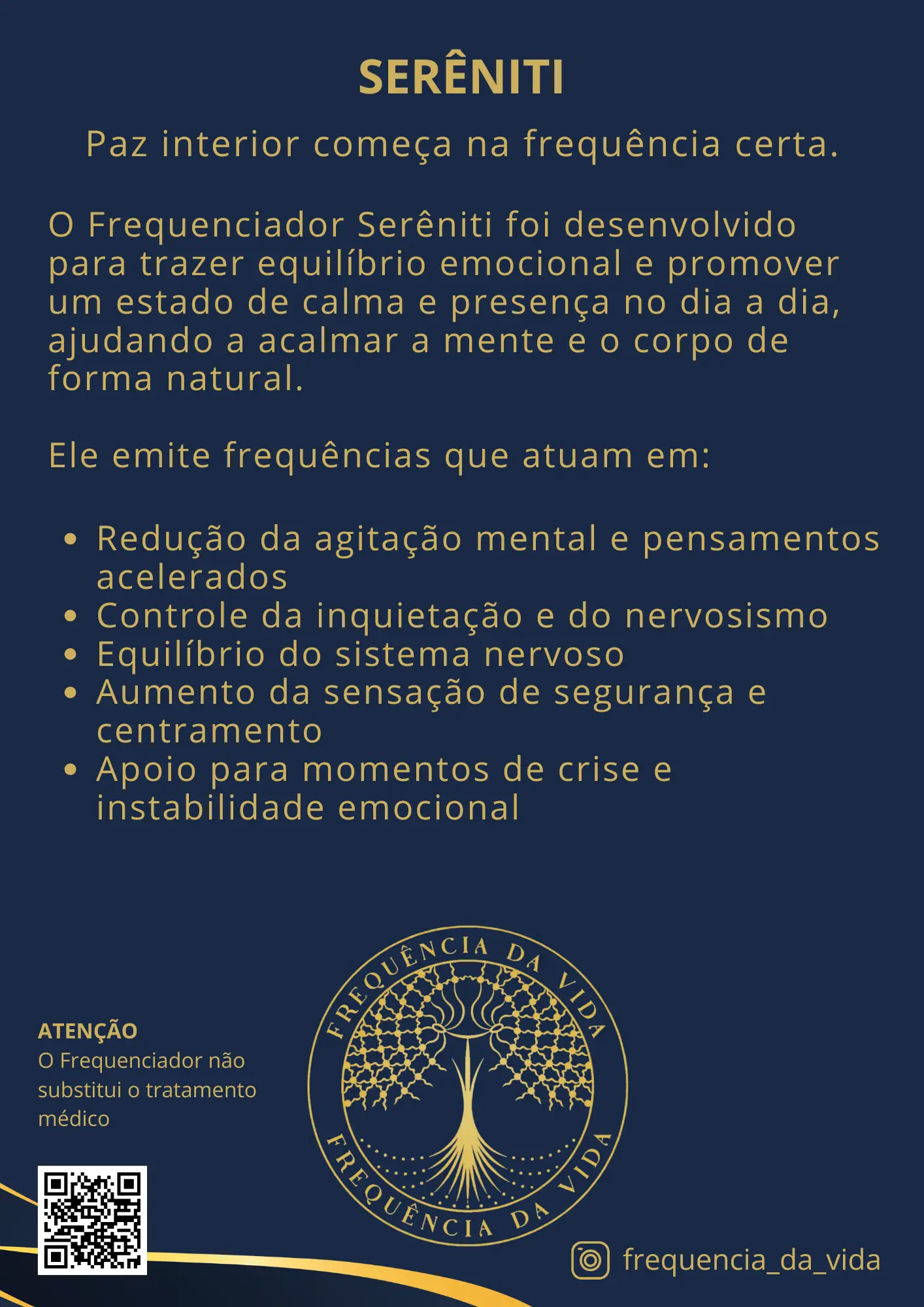 Paz interior começa na frequência certa. O Frequenciador Serêniti foi desenvolvido para trazer equilíbrio emocional e promover