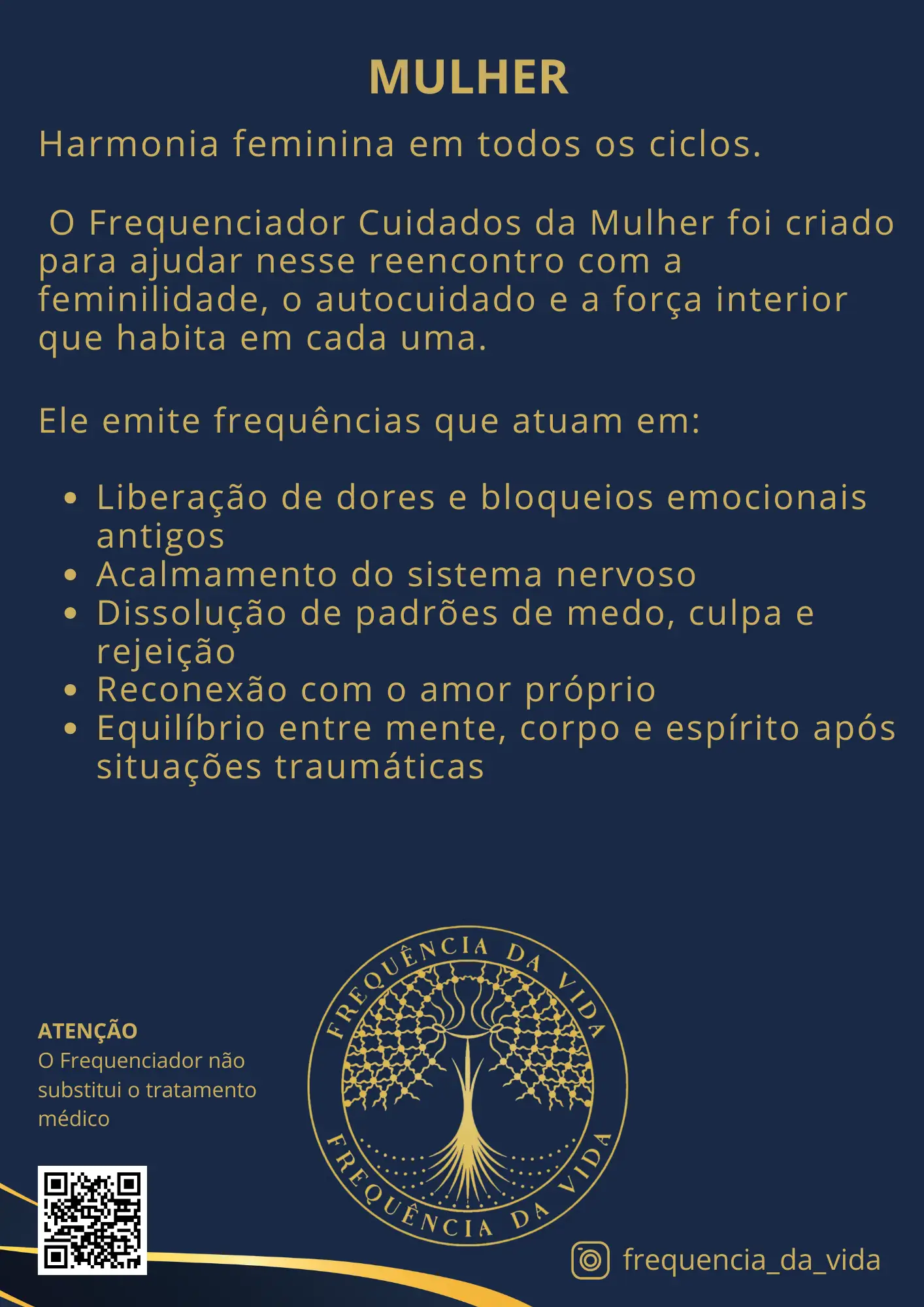 O Frequenciador Cuidados da Mulher foi criado para ajudar nesse reencontro com a feminilidade, o autocuidado e a força interior que habita em cada uma.